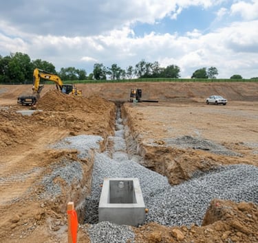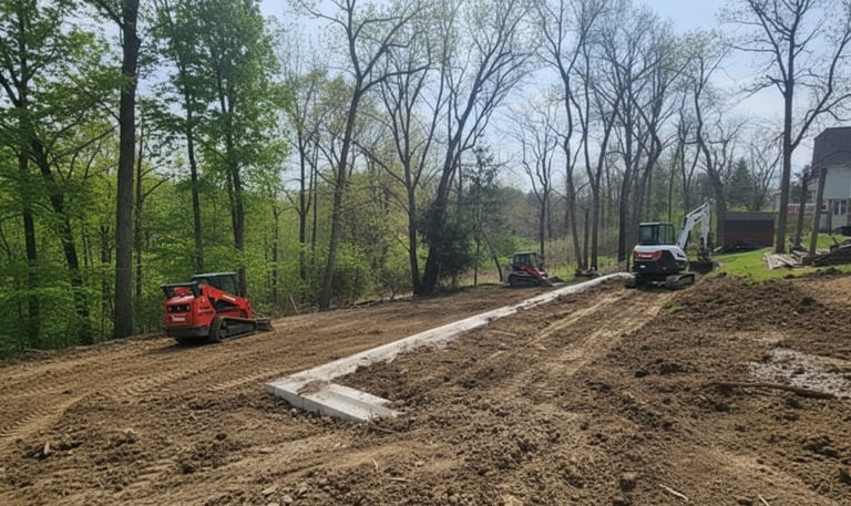 We handle the full scope. Beyond the visible surface, we manage excavation, grading, and drainage systems including French drains — everything needed to ensure a solid, dry foundation before any concrete or asphalt goes down.